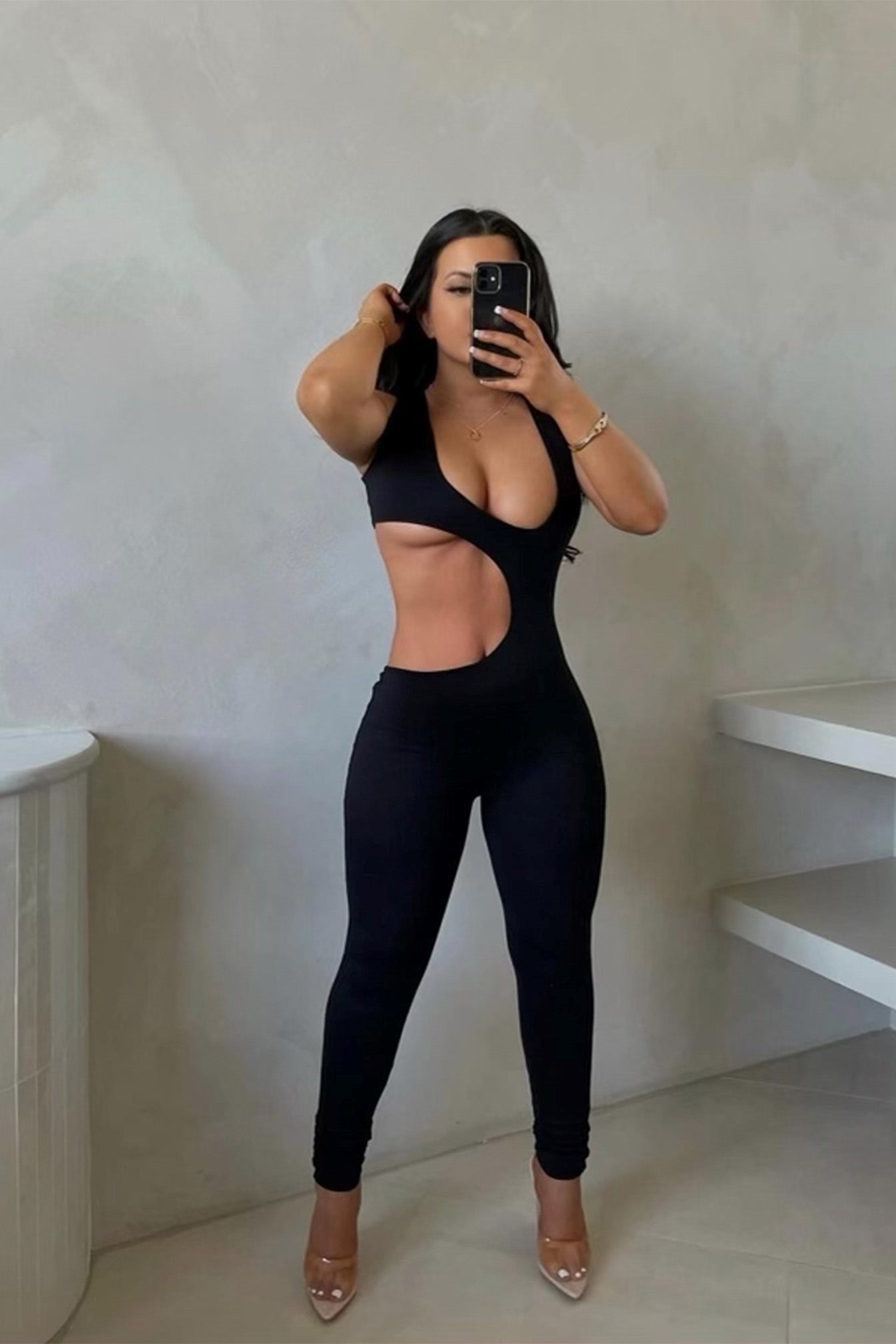 Black Cut Out Asymmetric Sleeveless Jumpsuit