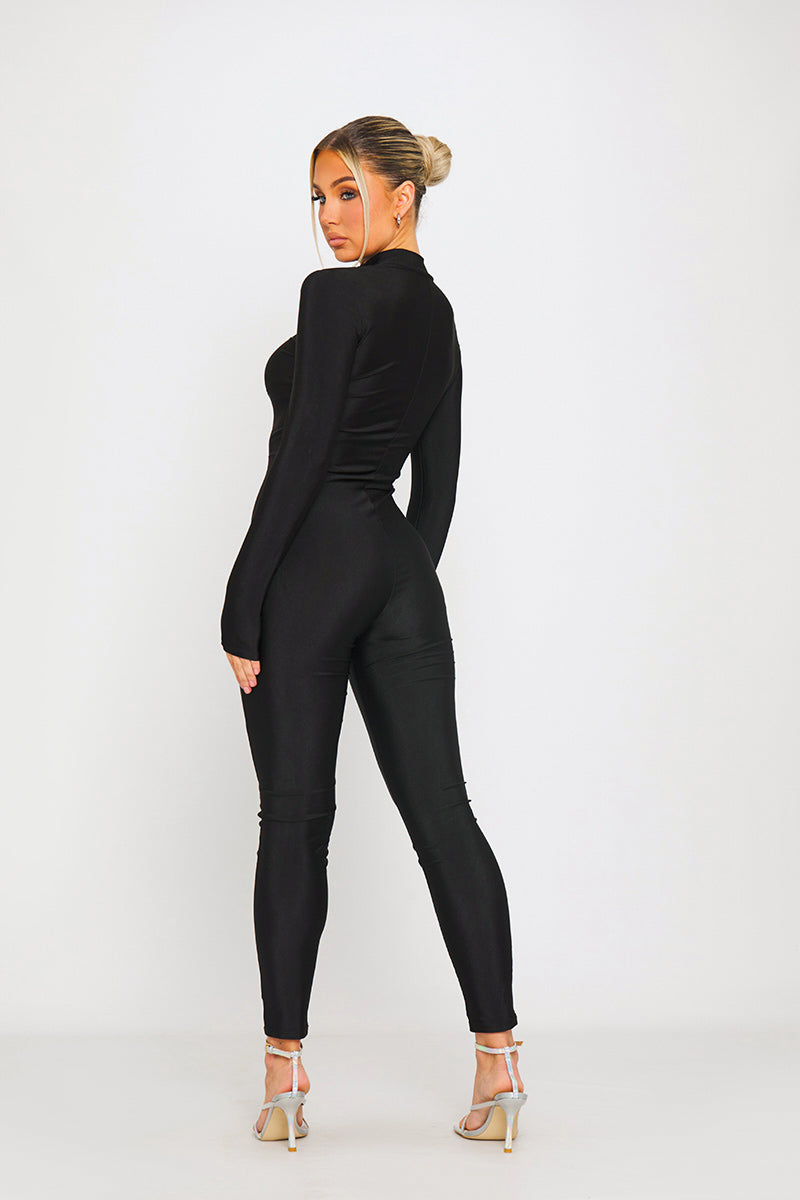 Black High Neck Seam Detail Long Sleeve Jumpsuit