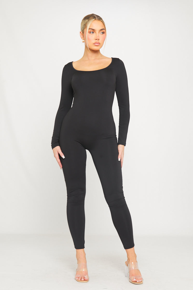 Black Slinky Scoop Neck Long Sleeve Jumpsuit