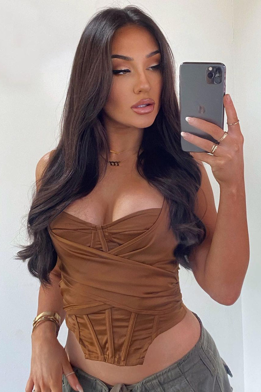 Chocolate Twist Detail Bustier Corset Crop Top