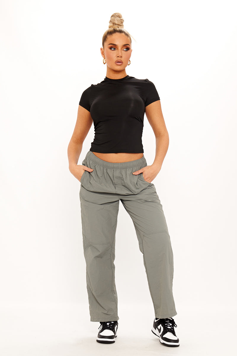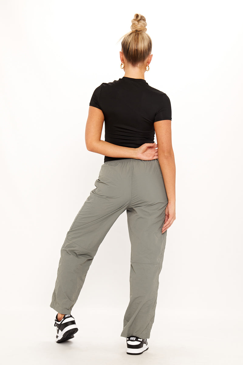 Grey Baggy Straight Leg Shell Parachute Cargos