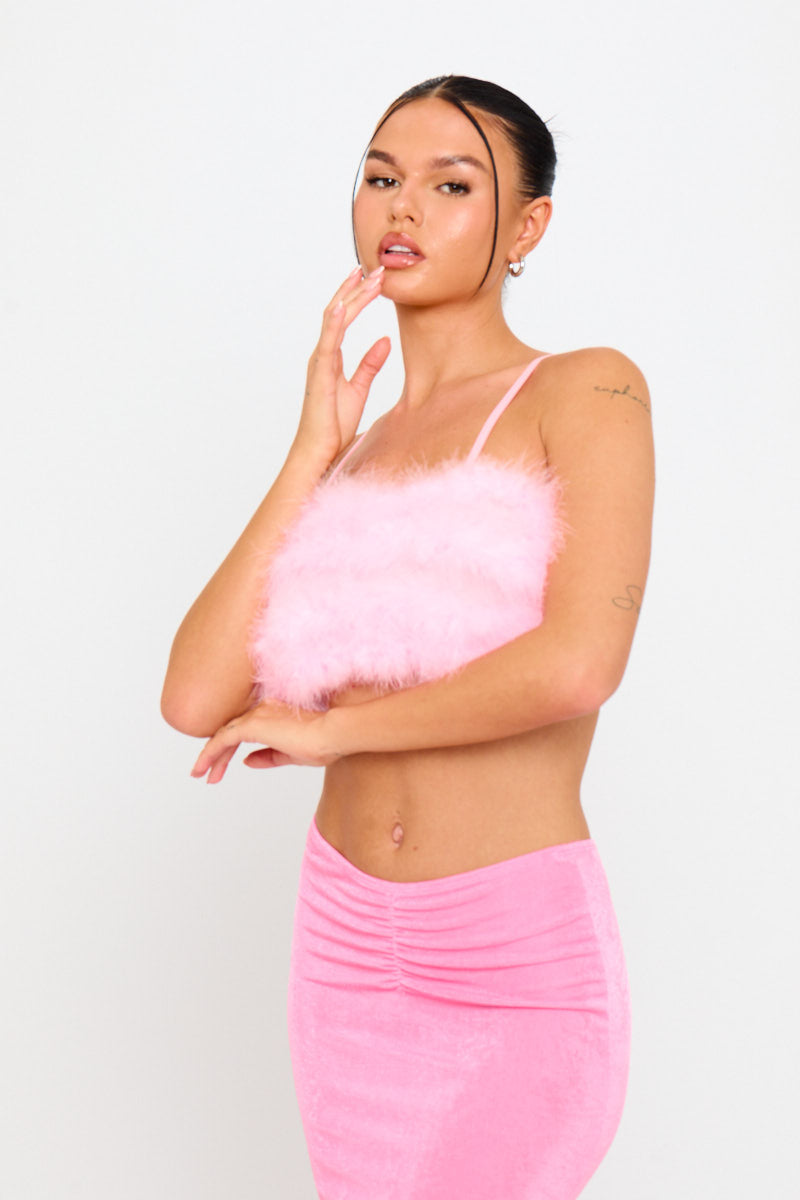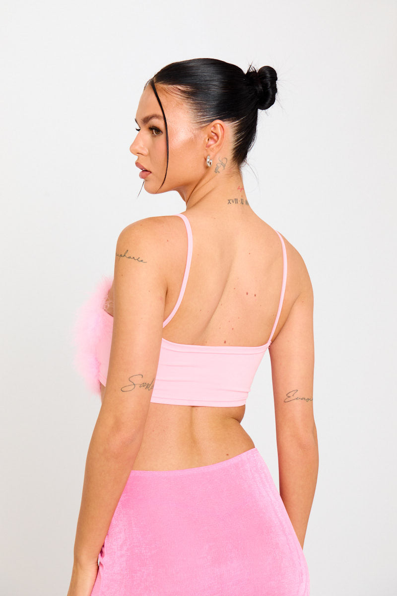 Pink Fluffy Faux Fur Spaghetti Strap Crop Top